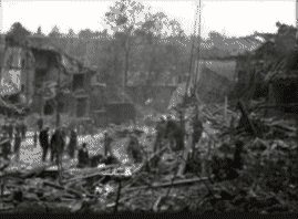 a local pub was hit by a bomb and badly damaged. There were customers on the premises and Derek helped with the rescue efforts. |