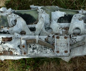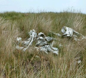 2003 The site where W4326 SR - C "Charlie" came to earth is located on remote land in mid Wales. An isolated but peaceful place where nothing disturbs the peace except the elements and the sheep. On this day, warm summer sunshine bathed the surrounding land and the air was heavy & still. Despite this the first sight of a plane wreck especially one in which a family member perished is literally chilling. |